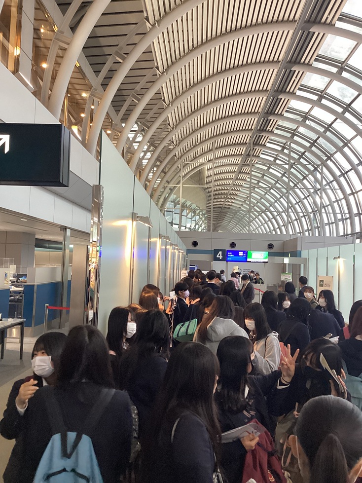 学校行事 修学旅行A隊1日目 2025年12月15日 初の台湾修学旅行がいよいよ始まりました!学年の人数が多いため、2つの隊に分かれ、12/14にA隊(6~10組)が出発しました。 昼頃山形駅に集合し、バスで仙台空港へ移動。飛行機で台湾の桃園空港へ無事着陸。 台湾の地に降り立ち、皆口々に発した言葉は「あったか~い」。そう、台湾は15℃位。 ホテルに着いたのは21時過ぎでした。 12/15は山形市の友好都市・台南へ向かいます!
