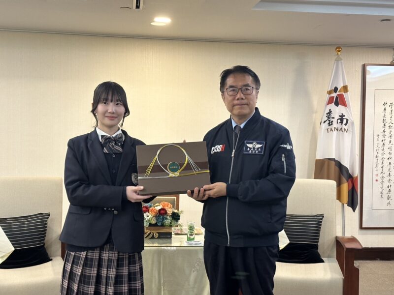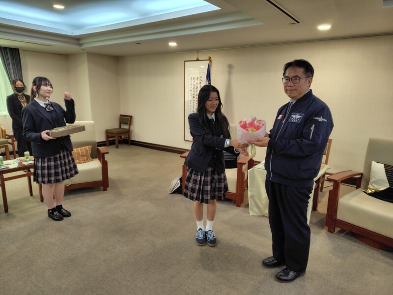 到着後、代表生徒が台南市役所に表敬訪問をさせていただきました。