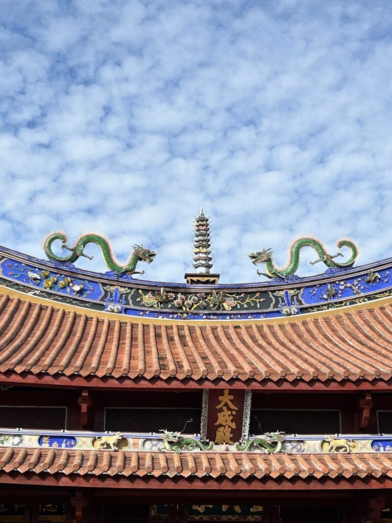 お昼は台南料理をいただき、午後からは孔子廊、赤嵌楼を見学。台湾の京都と表されるだけあり、迫力のある歴史的建造物に心を打たれました。