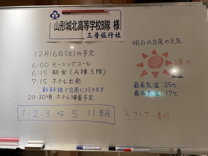 B隊(1~5組、11組)はこの日(12/15)に台湾に到着。長時間の移動に疲れも見られましたが、笑顔が多かったです。