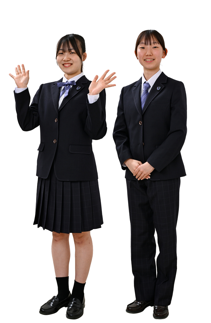 創立100周年を迎える節目に、これまでの伝統を継承しつつ、新たな時代にふさわしい制服が誕生しました。スクールカラーである紫を基調に、品格と個性を感じさせるデザイン。季節や気候に応じて組み合わせを楽しめるスタイルや、最新素材による快適性も魅力です。自由で柔軟な感性を大切にする本校の姿勢を、制服でも表現しました。